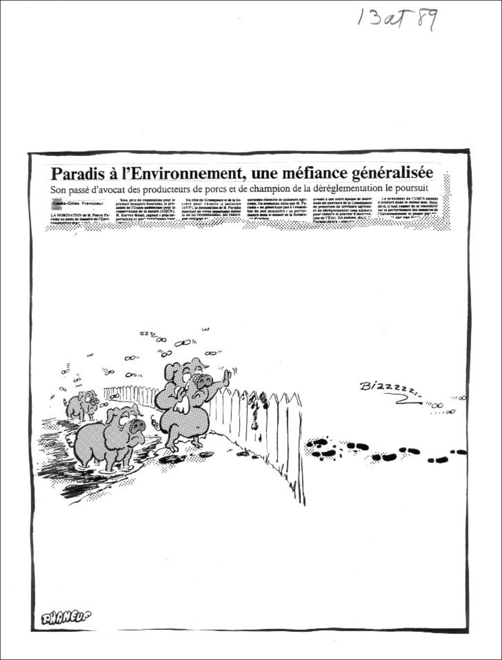 Paradis à l'Environnement, une méfiance généralisée, 13 octobre 1989, Archives nationales à Montréal, Fonds Jean-Marc Phaneuf, (06M,P575,S4,SS4,P722), Jean-Marc Phaneuf.