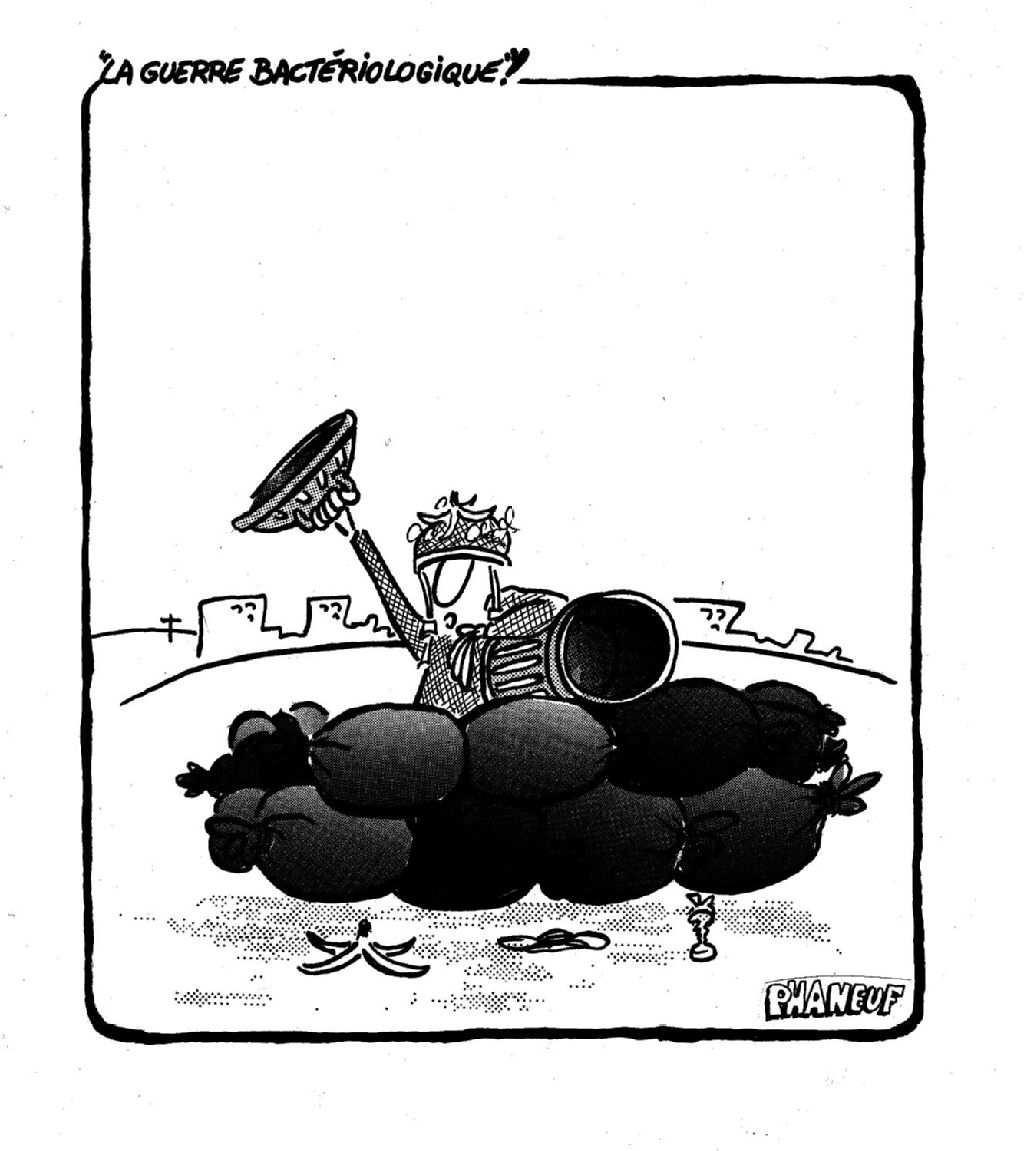 "La guerre bactériologique", [Vers 1980], Archives nationales à Montréal, Fonds Jean-Marc Phaneuf, (06M,P575,S4,SS4,P88), Jean-Marc Phaneuf.