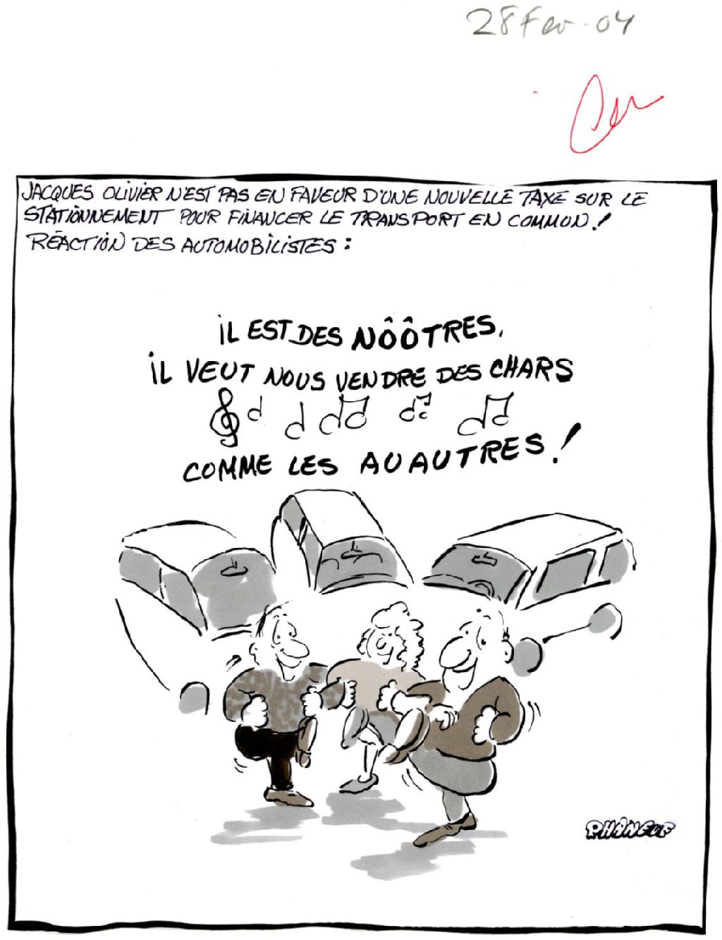 Jacques Olivier n'est pas en faveur d'une nouvelle taxe sur le stationnement pour financer le transport en commun, 28 février 2004, Archives nationales à Montréal, Fonds Jean-Marc Phaneuf (ajout en attente de traitement), (06M,P575,S4,SS5,P1042), Jean-Marc Phaneuf.