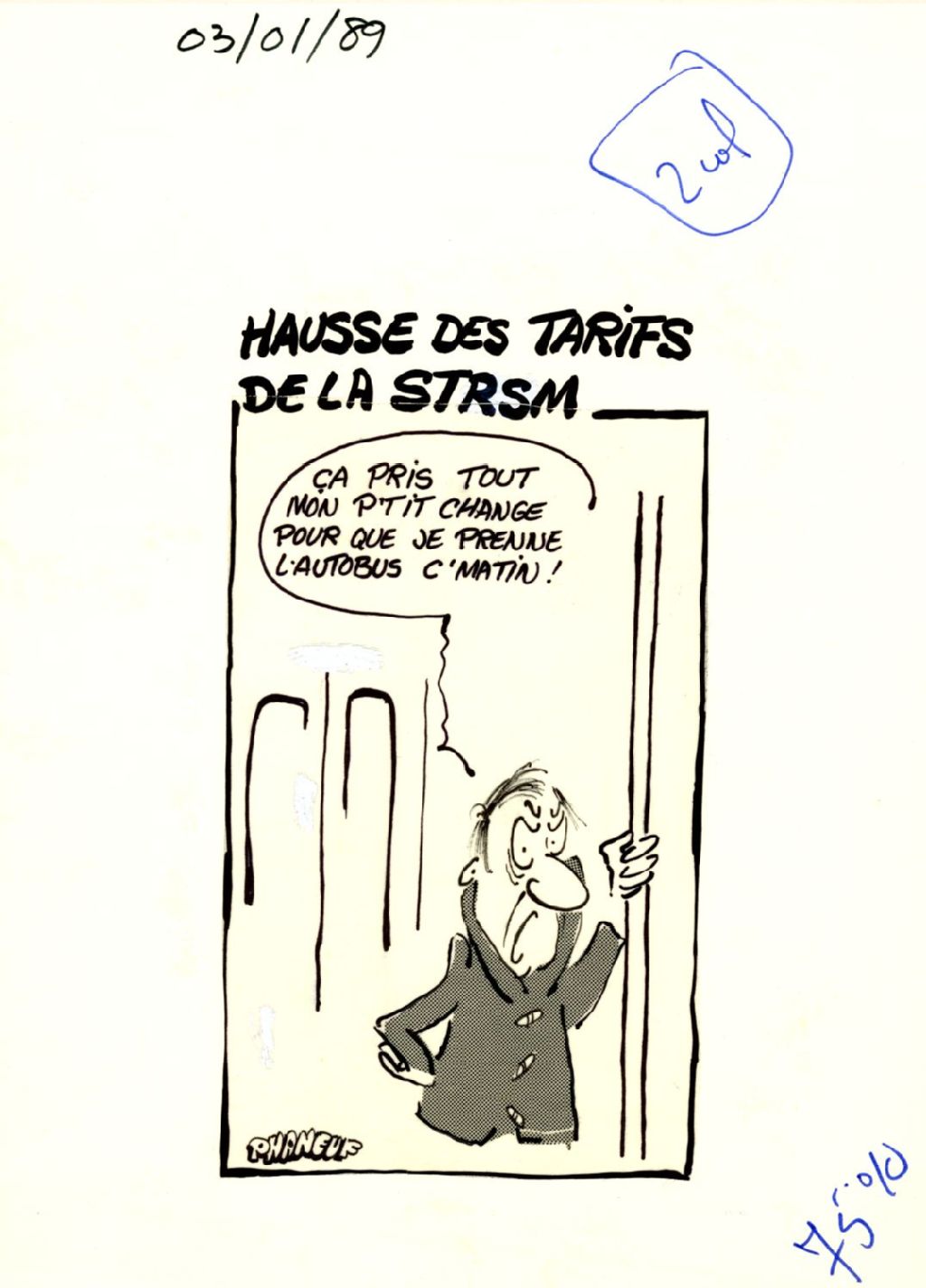 Hausse des tarifs de la STRSM, 3 mars 1989, Archives nationales à Montréal, Fonds Jean-Marc Phaneuf (ajout en attente de traitement), (06M,P575,S4,SS5,P944), Jean-Marc Phaneuf.
