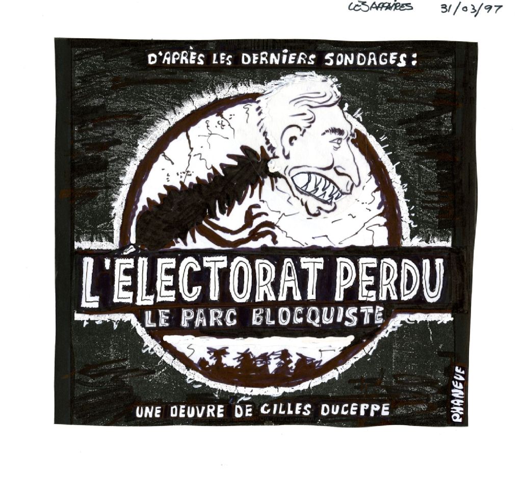 D'après les derniers sondages, 31 mars 1997, Archives nationales à Montréal, Fonds Jean-Marc Phaneuf (ajout en attente de traitement), (06M,P575,S4,SS6,P182), Jean-Marc Phaneuf.