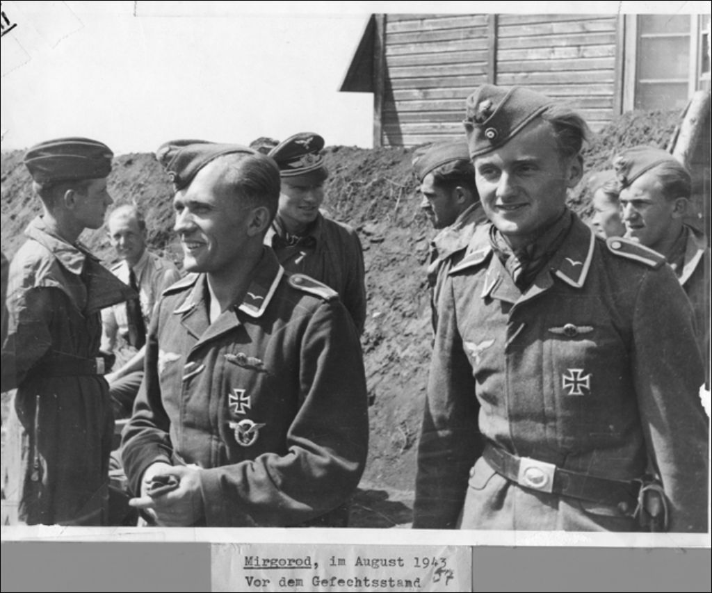 - Les soldats et les aviateurs sont photographiés au combat, lors de la distribution de nourriture dans un wagon de ravitaillement, pendant une remise de médailles destinées à des pilotes à Focsani (Roumanie); à l'occasion d'un enterrement; et lors d'un cocktail tenu à Kursk en Russie. Sur un des clichés apparaît Adolf Hitler en visite à Poltava en Pologne