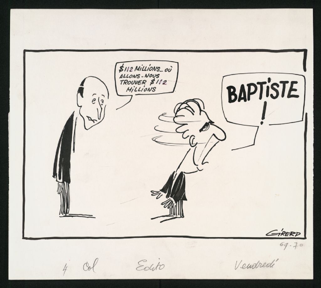 Qui paiera le déficit de 112 millions de dollars, 1970, Archives nationales à Montréal, Fonds Jean-Pierre Girerd, (06M,P683,S2,SS2,P137), Girerd.