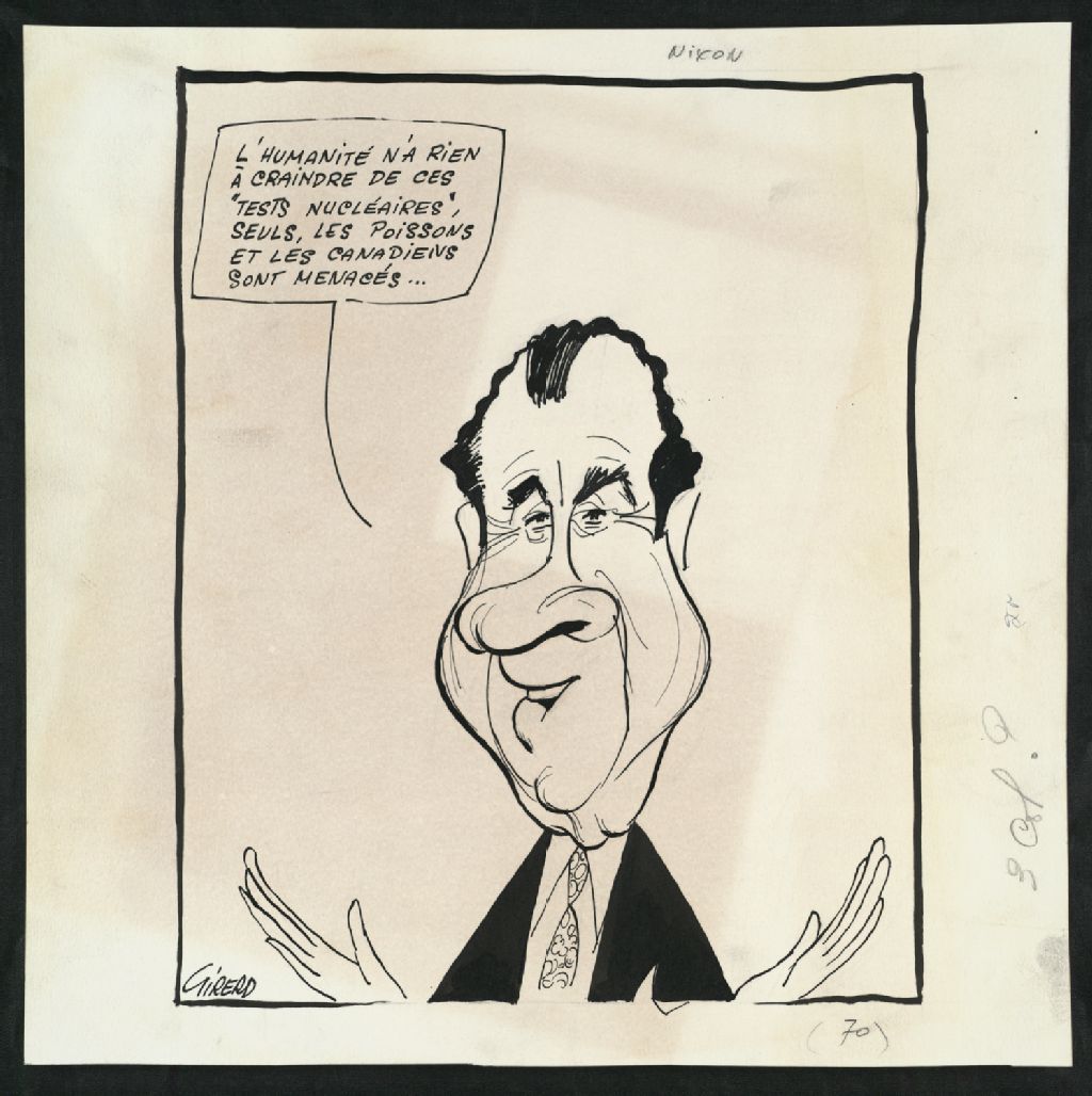 Cette pièce montre le président américain Richard Nixon se voulant rassurant quant aux essais nucléaires américains en sol canadien