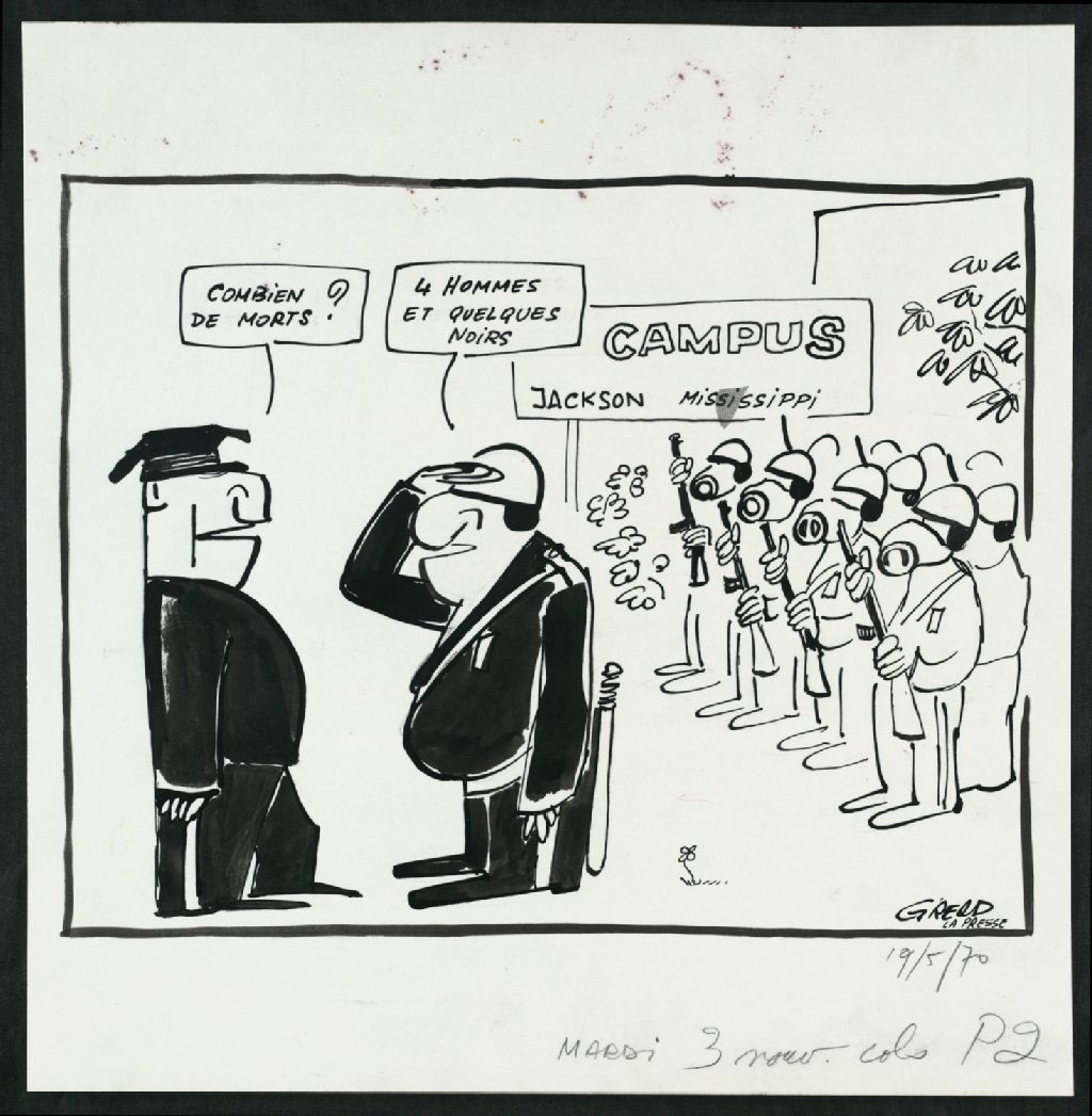 Intervention policière au campus Jackson au Mississippi, 19 mai 1970, Archives nationales à Montréal, Fonds Jean-Pierre Girerd, (06M,P683,S2,SS2,P169), Girerd.