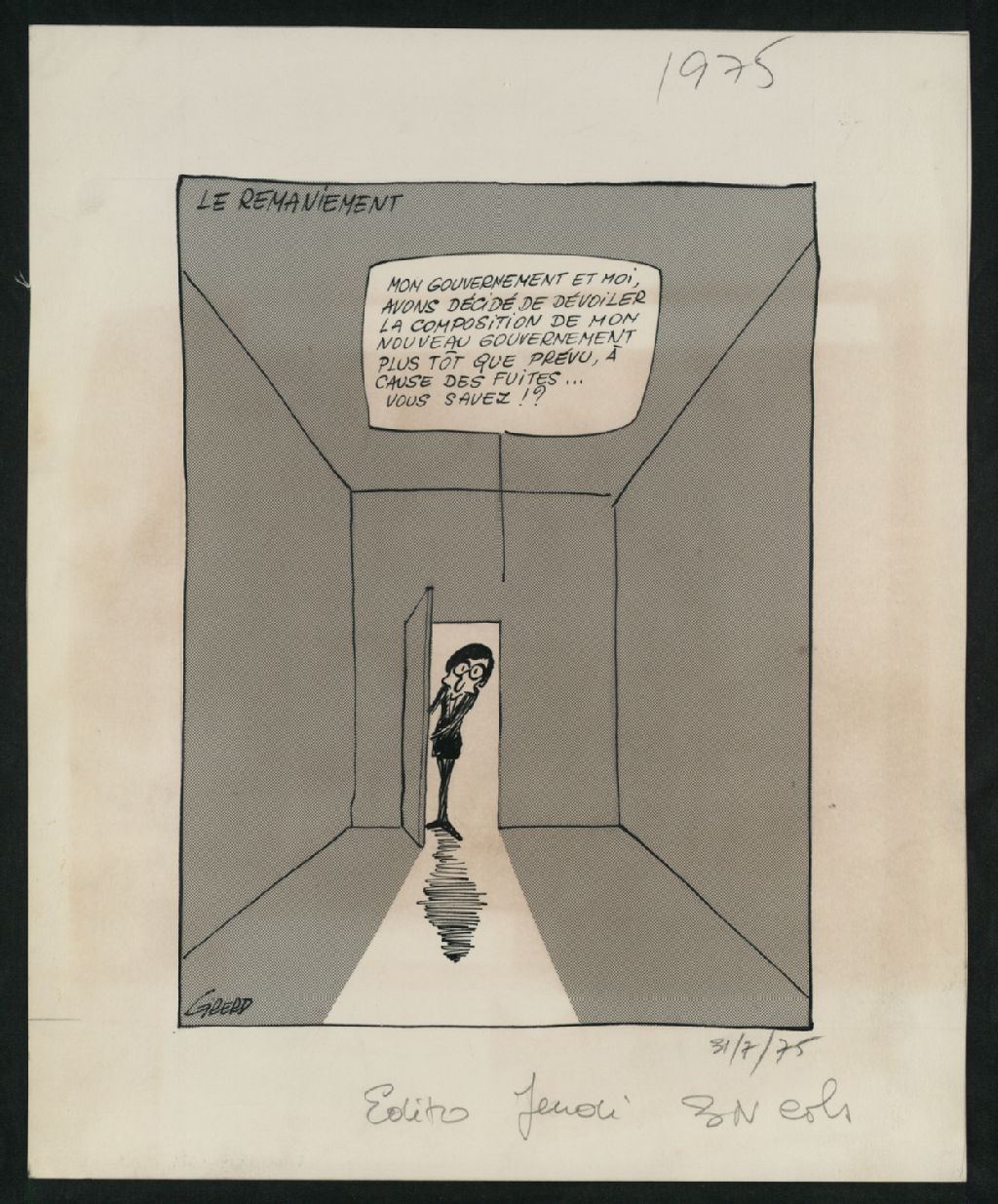Le remaniement, 31 juillet 1975, Archives nationales à Montréal, Fonds Jean-Pierre Girerd, (06M,P683,S2,SS2,P236), Girerd.