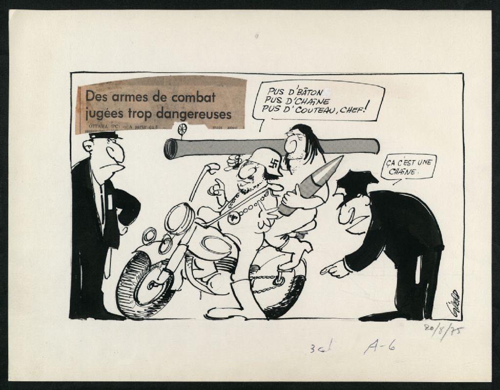 Des armes de combat jugées trop dangereuses, 20 août 1975, Archives nationales à Montréal, Fonds Jean-Pierre Girerd, (06M,P683,S2,SS2,P243), Girerd.