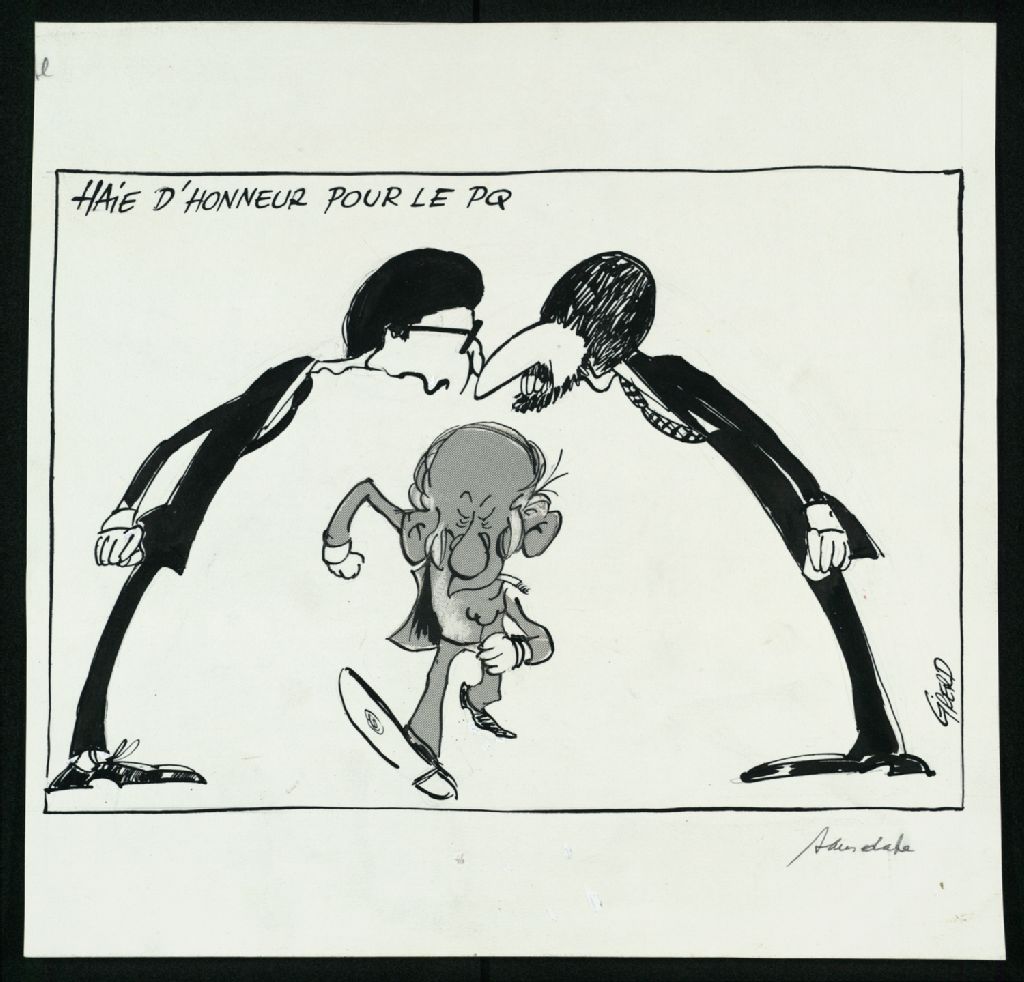 Haie d'honneur pour le PQ, [197-], Archives nationales à Montréal, Fonds Jean-Pierre Girerd, (06M,P683,S2,SS2,P33), Girerd.