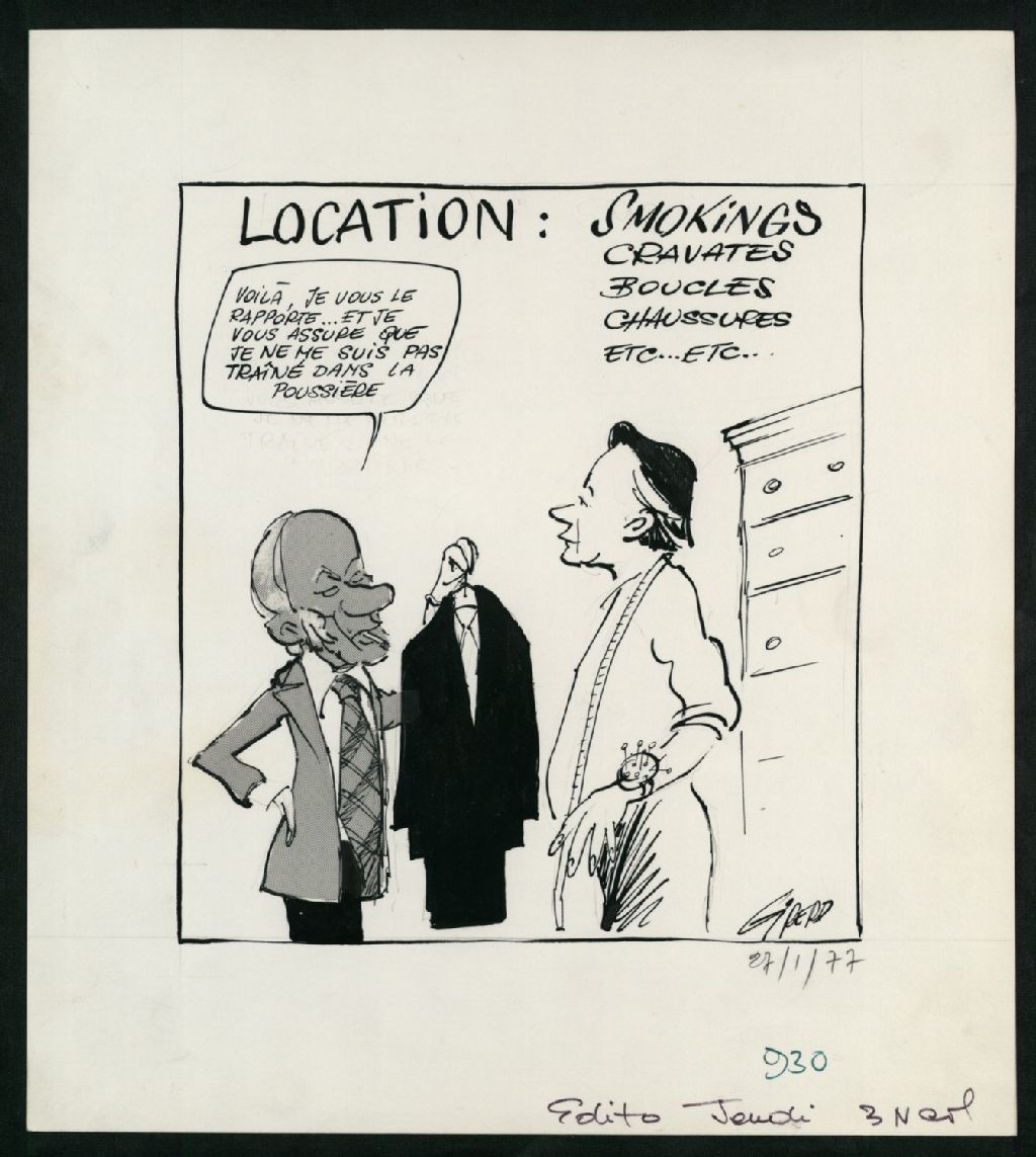 Location : smokings, cravates, boucles, chaussures etc... etc.., 27 janvier 1977, Archives nationales à Montréal, Fonds Jean-Pierre Girerd, (06M,P683,S2,SS2,P349), Girerd.