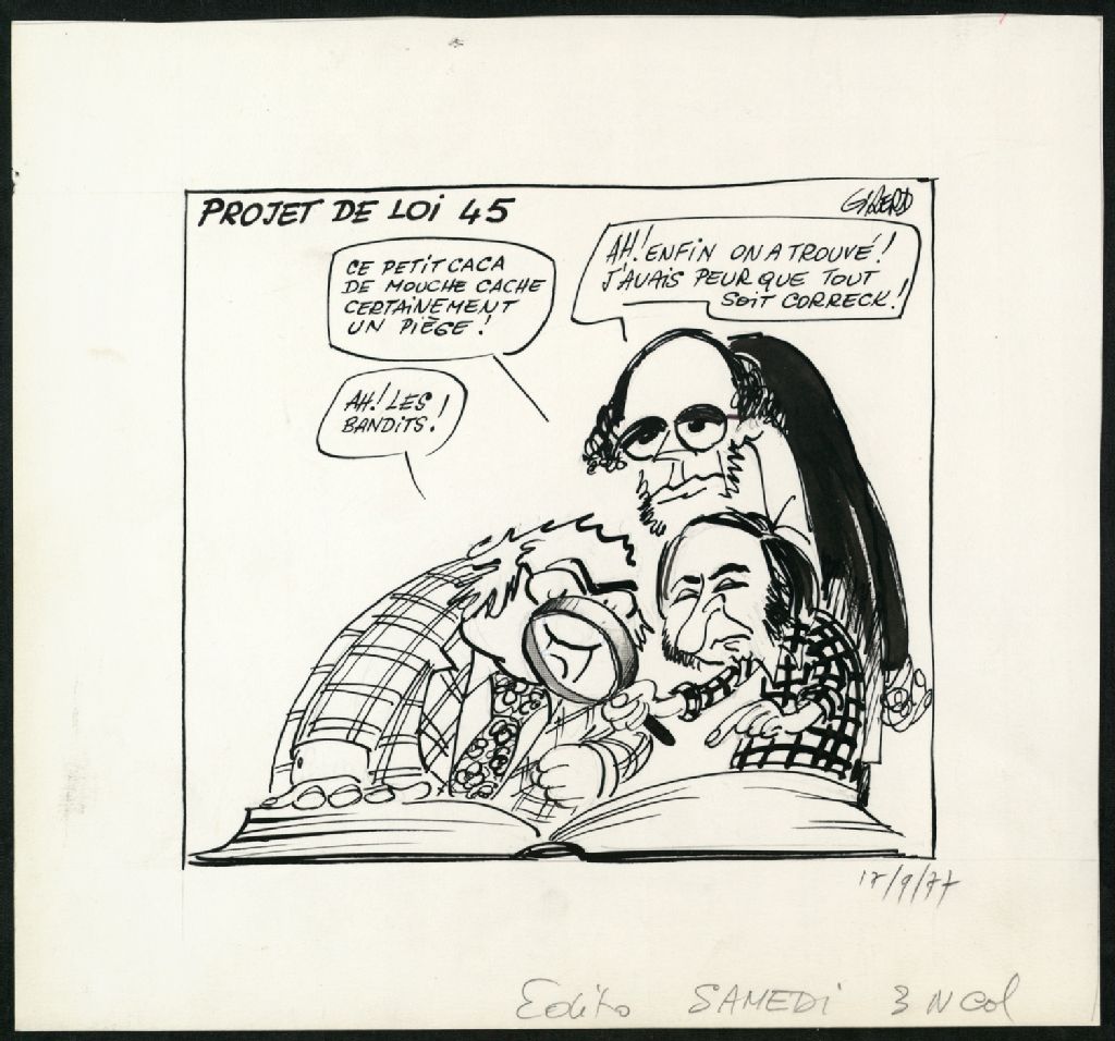 Projet de loi 45, 12 septembre 1977, Archives nationales à Montréal, Fonds Jean-Pierre Girerd, (06M,P683,S2,SS2,P390), Girerd.