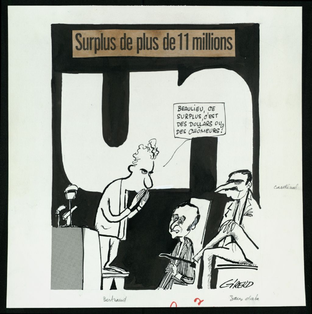 Surplus de plus de 11 millions, [197-], Archives nationales à Montréal, Fonds Jean-Pierre Girerd, (06M,P683,S2,SS2,P47), Girerd.