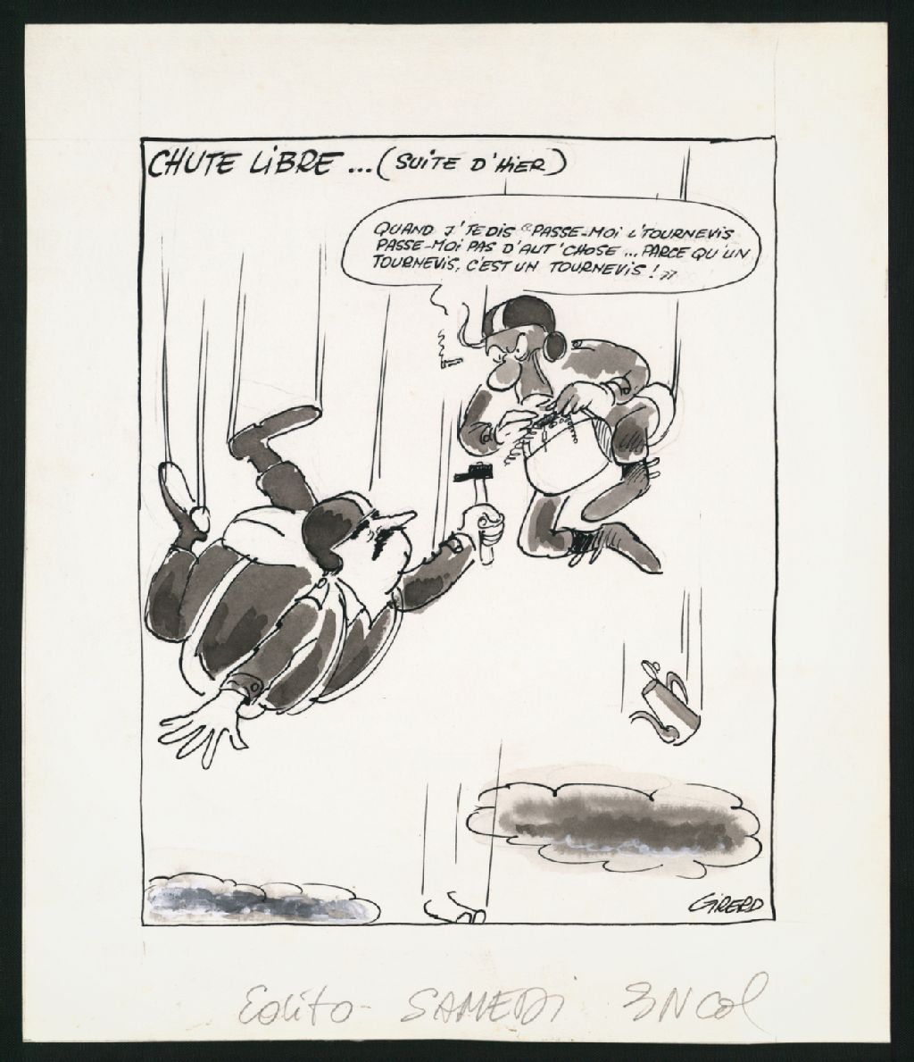 Chute libre... (suite d'hier), 27 mars 1982, Archives nationales à Montréal, Fonds Jean-Pierre Girerd, (06M,P683,S2,SS2,P490), Girerd.