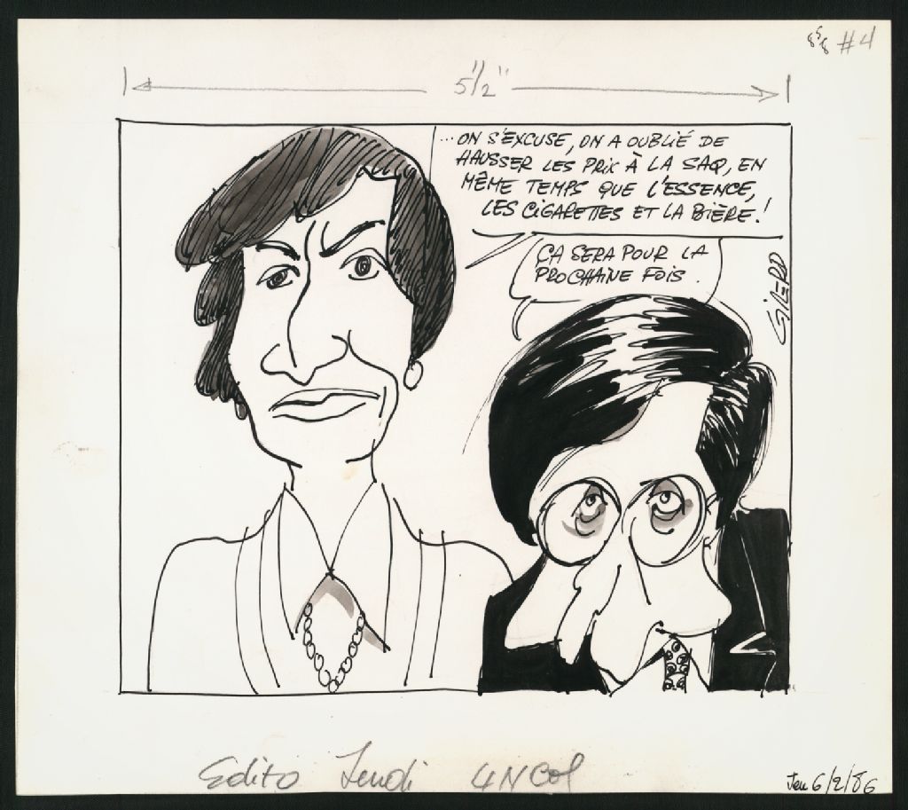 ... On s'excuse, on a oublié de hausser les prix à la SAQ, en même temps que l'essence, les cigarettes et la bière, 6 février 1986, Archives nationales à Montréal, Fonds Jean-Pierre Girerd, (06M,P683,S2,SS2,P599), Girerd.
