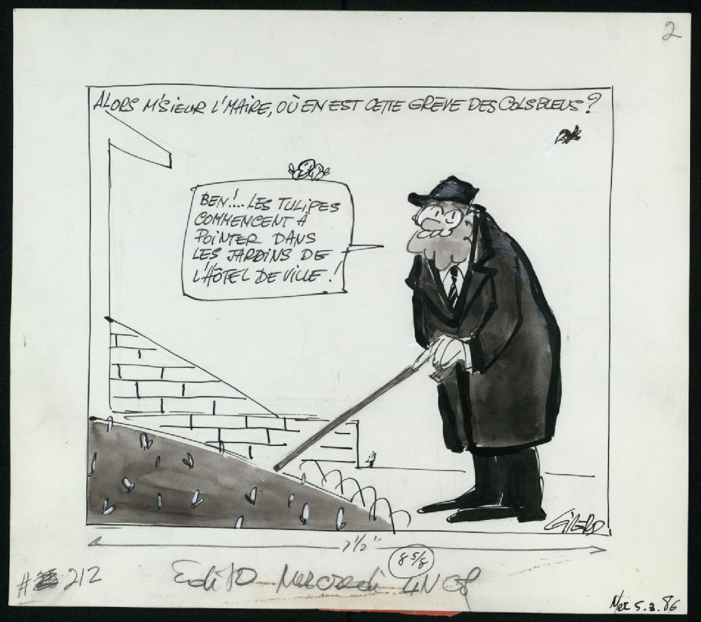 Alors m'sieur l'maire, où en est cette grève des cols bleus, 5 mars 1986, Archives nationales à Montréal, Fonds Jean-Pierre Girerd, (06M,P683,S2,SS2,P604), Girerd.