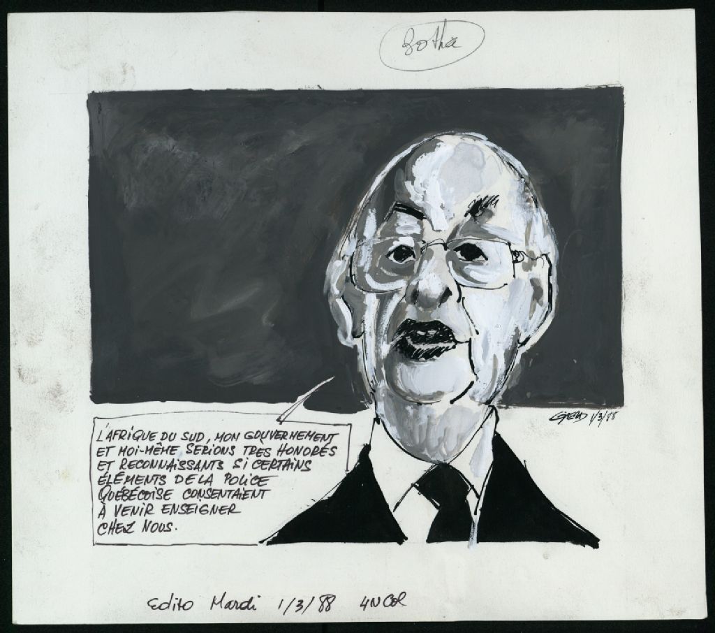 La requête de Monsieur Botha auprès de la police québécoise, 1 mars 1988, Archives nationales à Montréal, Fonds Jean-Pierre Girerd, (06M,P683,S2,SS2,P636), Girerd.