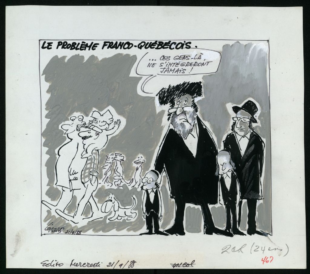 Cette pièce montre des Juifs disant des Québécois : « ...Ces gens-là ne s'intégreront jamais! »