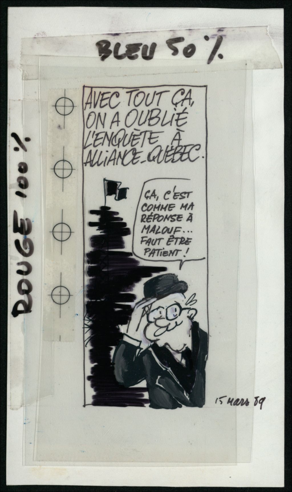 Avec tout ça, on a oublié l'enquète à Alliance-Québec, 1989, Archives nationales à Montréal, Fonds Jean-Pierre Girerd, (06M,P683,S2,SS2,P658), Girerd.