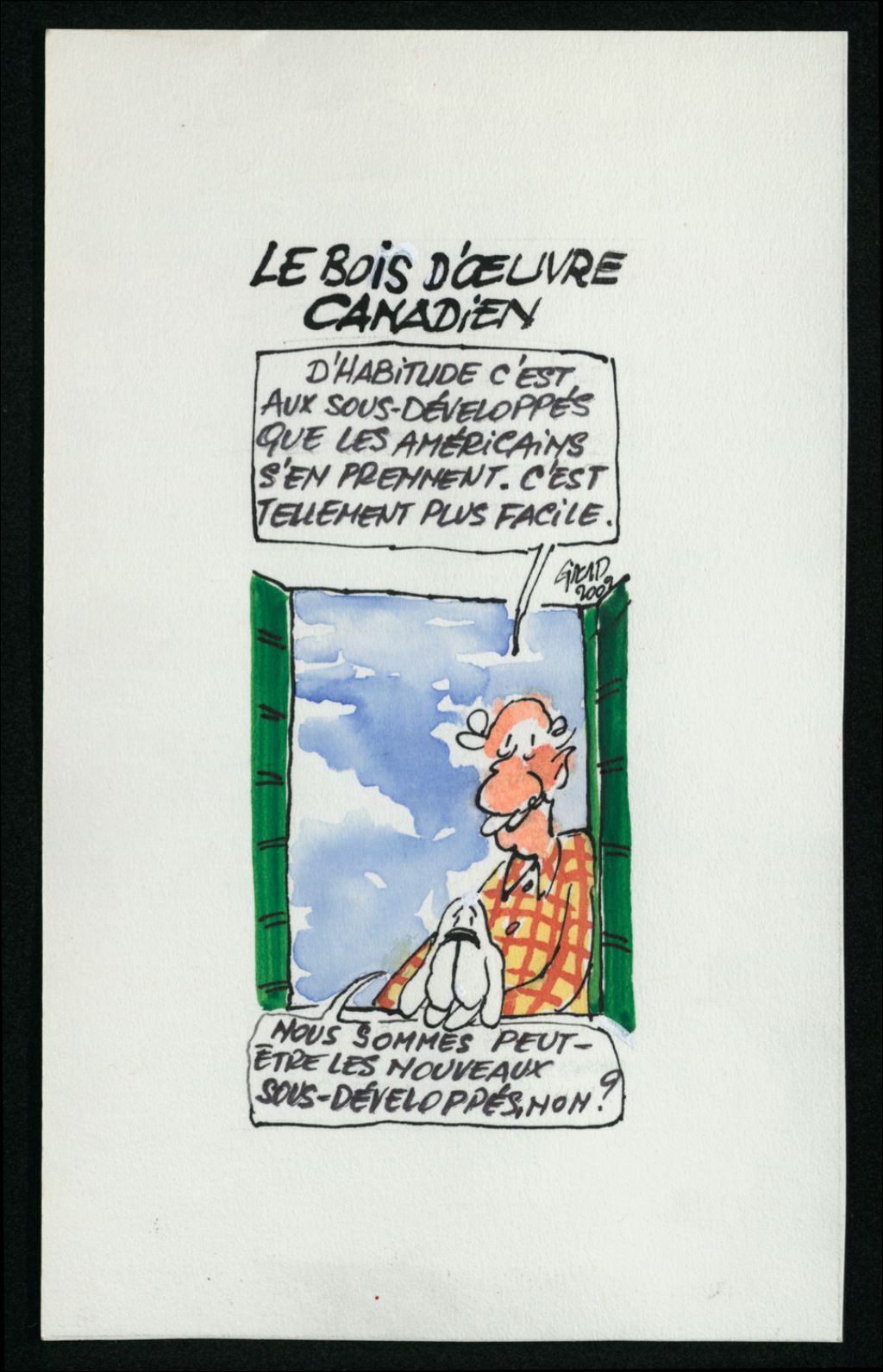 Le bois d'oeuvre canadien, 2002, Archives nationales à Montréal, Fonds Jean-Pierre Girerd, (06M,P683,S2,SS2,P776), Girerd.