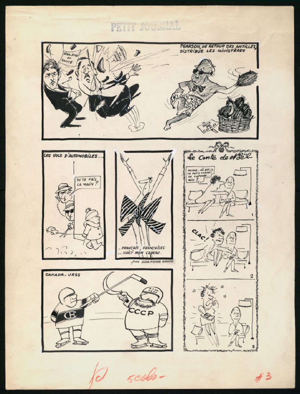 Pearson, de retour des Antilles, distribue les ministères; Les vols d'automobiles....; Le cadeau de Charles de Gaulle; Canada-URSS; Le conte de Noël, 15 décembre 1965, Archives nationales à Montréal, Fonds Jean-Pierre Girerd, (06M,P683,S2,SS3,P9), Jean-Pierre Girerd.