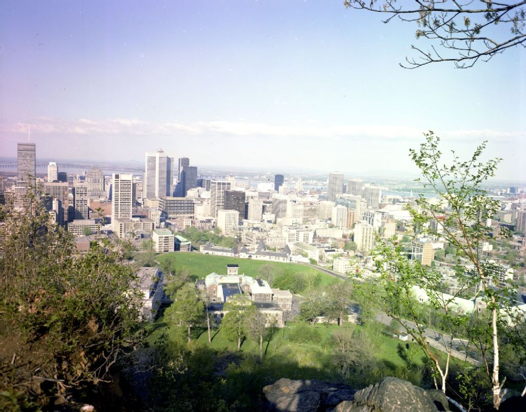 Vues du centre-ville de Montréal surtout réalisées à partir du mont Royal, [Vers 1970], Archives nationales à Montréal, Fonds Henri Rémillard, (06M,P685,S2,D114), Henri Rémillard.