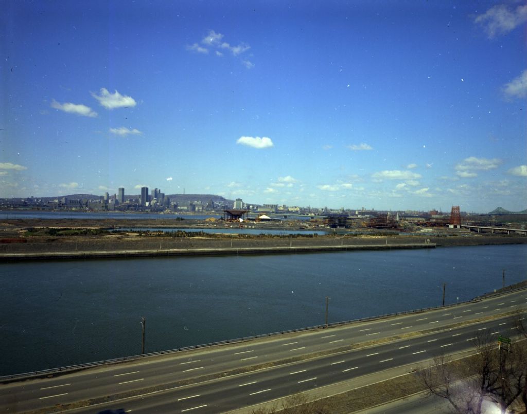 Le site en construction et quelques pavillons de l'Exposition universelle de 1967 à Montréal, 1965-1967, Archives nationales à Montréal, Fonds Henri Rémillard, (06M,P685,S2,D97), Henri Rémillard.