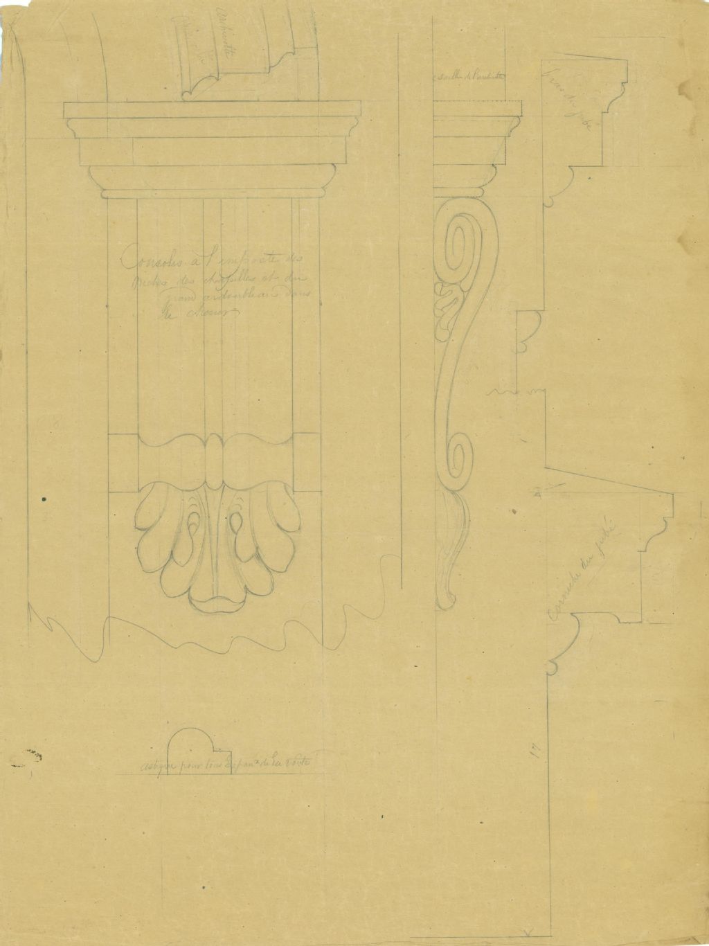 Consoles à l'imposte des niches des chapelles et du grand arc-doubleau dans le choeur de l'église de La-Nativité-de-La-Prairie