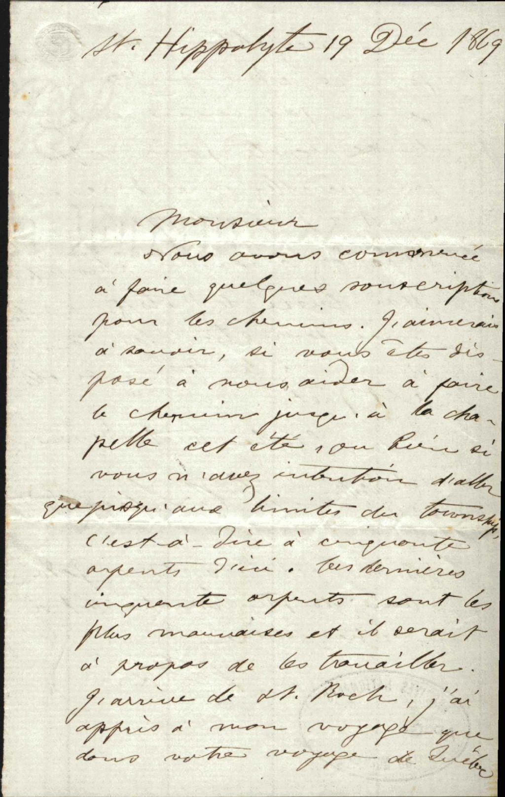 Correspondance du révérend F. X. Laberge au révérend Antoine Labelle, 19 décembre 1869-18 novembre 1872, Archives nationales à Montréal, Fonds Antoine Labelle, (06M,P774,S1,D330).