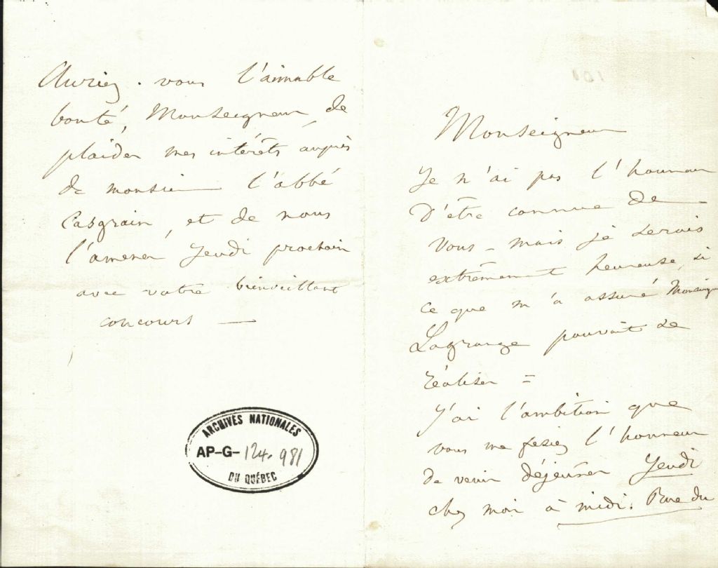 Correspondance de la Comtesse de Montalembert à monseigneur Antoine Labelle