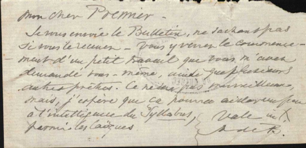 Correspondance de Monseigneur Pinsonneault, évêque de Birtha, au révérend Antoine Labelle