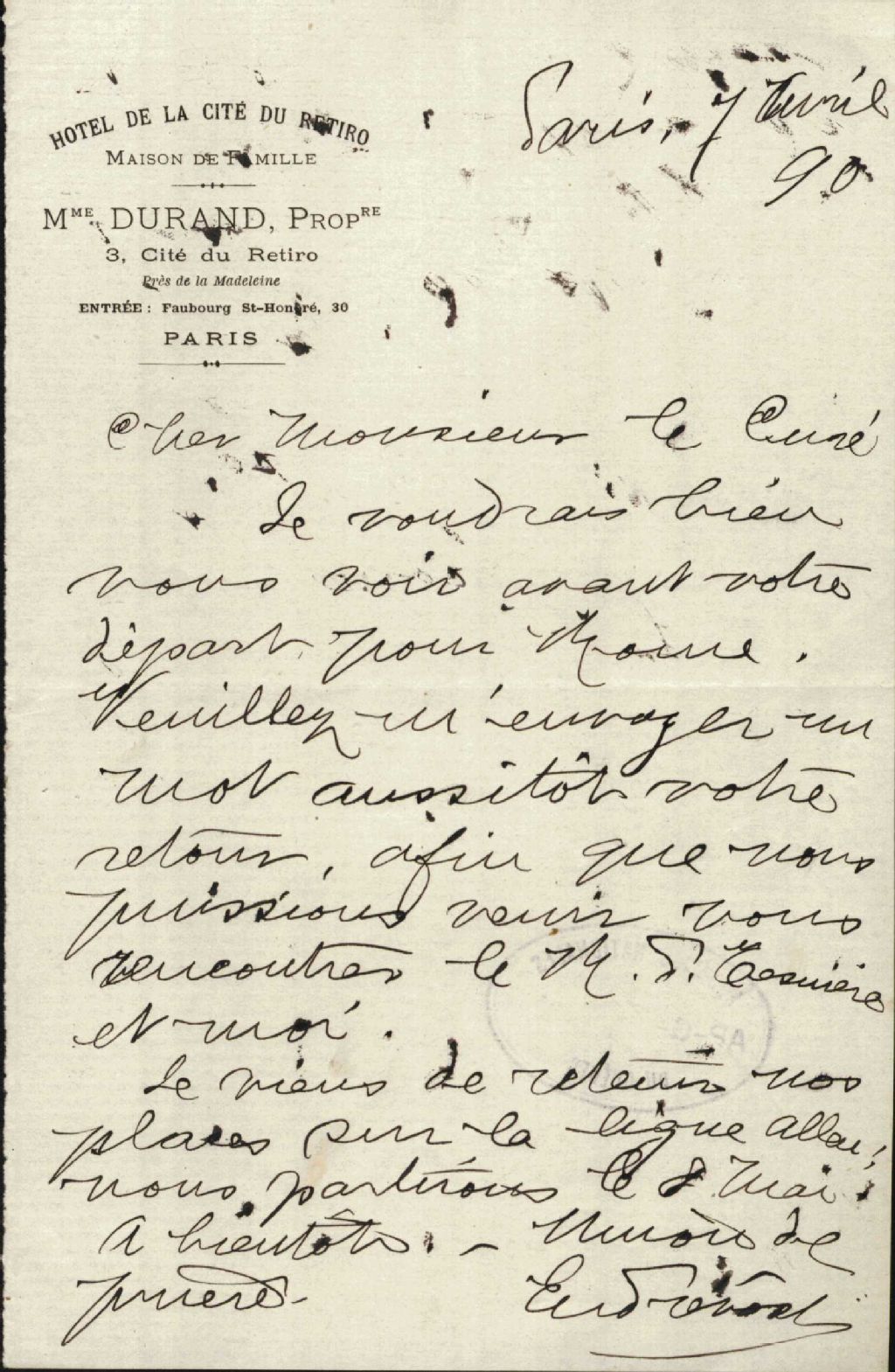 Correspondance du révérend Eugène Prévost, p.s.s., à monseigneur Antoine Labelle, 7 avril 1890-10 août 1890, Archives nationales à Montréal, Fonds Antoine Labelle, (06M,P774,S1,D487).