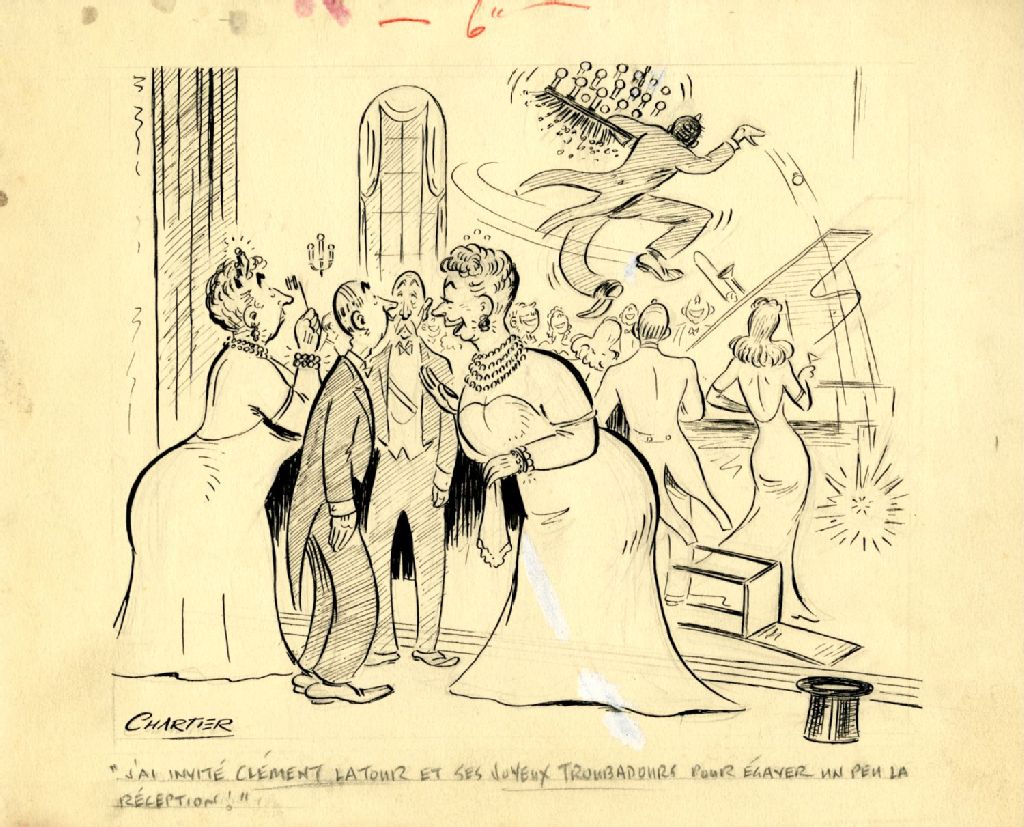 "J'ai invité Clément Latour et ses Joyeux Troubadours pour égayer un peu la réception!", [194-], Archives nationales à Montréal, Fonds Albert Chartier, (06M,P790,S1,P43), Chartier.