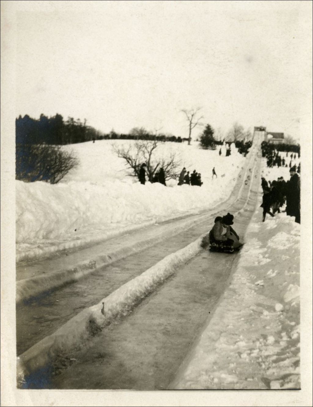 - De Montréal enneigé, nous retenons le carnaval d'hiver de Montréal et ses activités de glissade sur le mont Royal avec les toboggans (traînes sauvages); le Vieux-Montréal avec les bancs de neige des rues Notre-Dame et de la place d'Armes où se trouve le bâtiment New York Life Building et les colonnes de la Banque de Montréal de même qu'un tramway sillonnant la rue Notre-Dame.Sur la rue Saint-Jacques se trouvent les places d'affaires des compagnies Canadian Government Railway System, Prince Edward Island Railway, la compagnie Grand Trunk, le commerce Star Library Club et la place d'affaires de Victor Roy. Enfin, nous remarquons des funérailles où le corbillard est tiré par des chevaux et chaussés de skis pour l'hiver