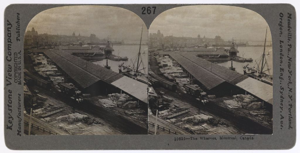 - Parmi les sites montréalais représentés figurent le quai et le port de Montréal de même que les voies ferrées à proximité, le Club de chasseurs de Montréal (Montreal Hunting Club), le pont du chemin de fer de Lachine, un char d'excursion destiné aux touristes, la rue Sainte-Catherine Ouest et l'enseigne du Trocadero de même que des passagers à l'embarquement d'un tramway.Nous remarquons le boulevard Dorchester devenu René-Lévesque, le marché Bonsecours à la place Jacques-Cartier, l'hôtel Mont-Royal sur l'avenue Mont-Royal où se trouvent chevaux et calèches, la rue Saint-Denis, l'hôtel Windsor du square Dominion, le palais de justice de Montréal sur la rue Notre-Dame, le cimetière de Côte-des-Neiges et la fête du Travail célébrée sur la rue Sainte-Catherine où défilent des chars allégoriques à la hauteur du commerce de broderie Gorcy