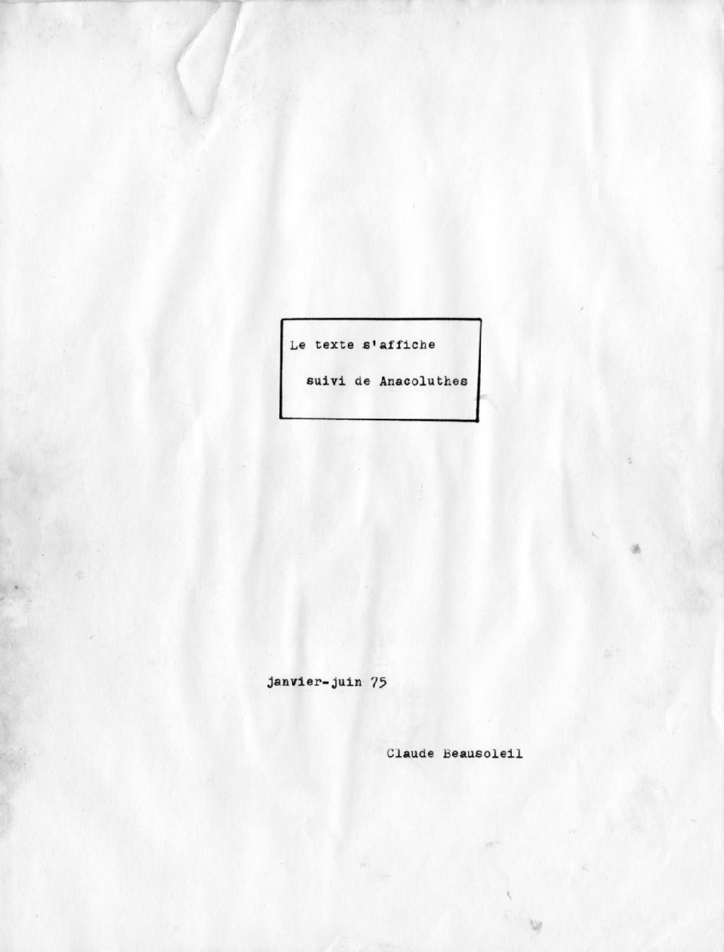 - Le dossier contient des poèmes manuscrits regoupés sous les titres «Le texte s'affiche» et «Le texte s'affiche, suivi de, Anacoluthes» destinés au recueil «Journal mobile» publié en 1974