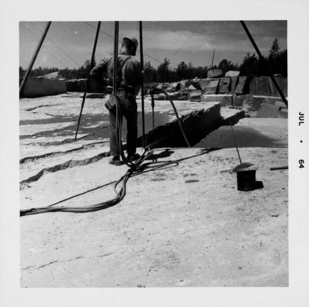Carrières - Saignée ou coupe à la flamme, 1964-07-20, Archives nationales à Rouyn-Noranda, Fonds Ministère des Ressources naturelles, (08Y,E20,S2,SS1,P1199), Photographe non identifié.