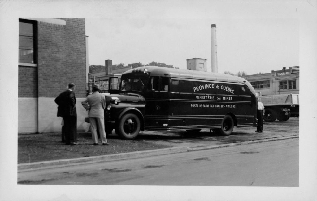 Poste de sauvetage dans les mines. Véhicule. Ministère des mines, 1948, Archives nationales à Rouyn-Noranda, Fonds Ministère des Ressources naturelles, (08Y,E20,S2,SS1,P1443), Photographe non identifié.