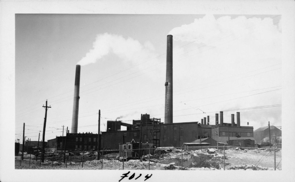 Mine Horne - Vue générale du concentrateur et du gisement de pyrite. Les 2 cheminées ont été érigées