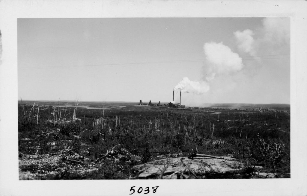 Mine Horne - Vue lointaine de la mine et de la ville, possiblement à partir du Mont Powell à l'Ouest