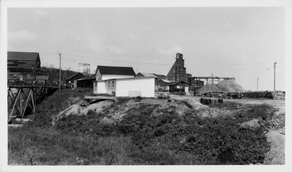 Normétal - Vue moyenne des bâtiments miniers (plan de côté)., 1937-08, Archives nationales à Rouyn-Noranda, Fonds Ministère des Ressources naturelles, (08Y,E20,S2,SS1,P420), Photographe non identifié.