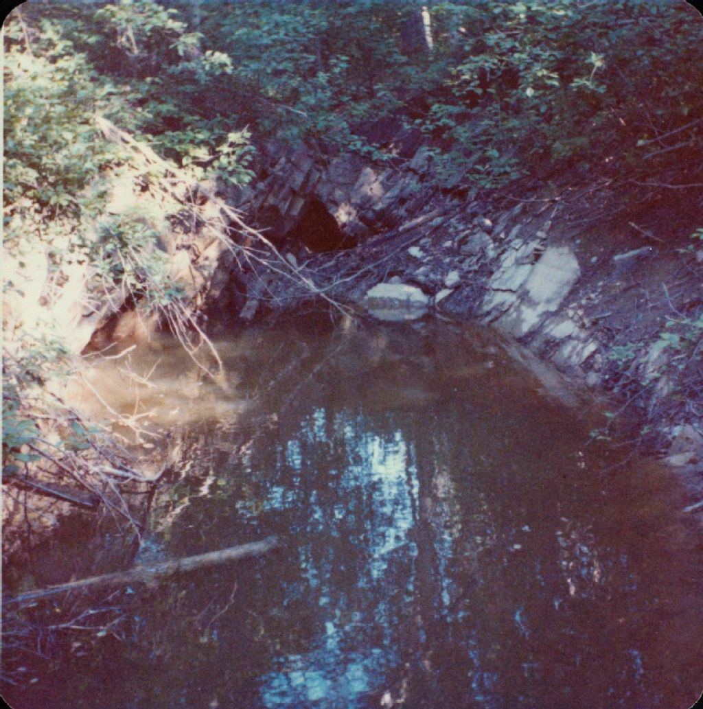 Mine New Arntfield - Région du puits no. 3. "Glory hole"., 1981-07-27, Archives nationales à Rouyn-Noranda, Fonds Ministère des Ressources naturelles, (08Y,E20,S2,SS1,P894), Photographe non identifié.