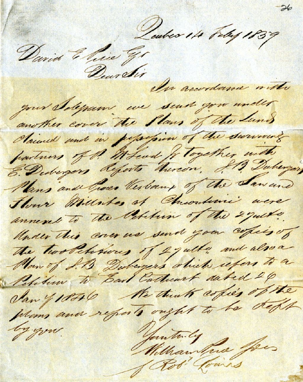 Lettre de William Price à David E.Price, 1859, Archives nationales à Saguenay, Fonds Ministère de l'Énergie et des Ressources naturelles, (02C,E78,S1,P26).