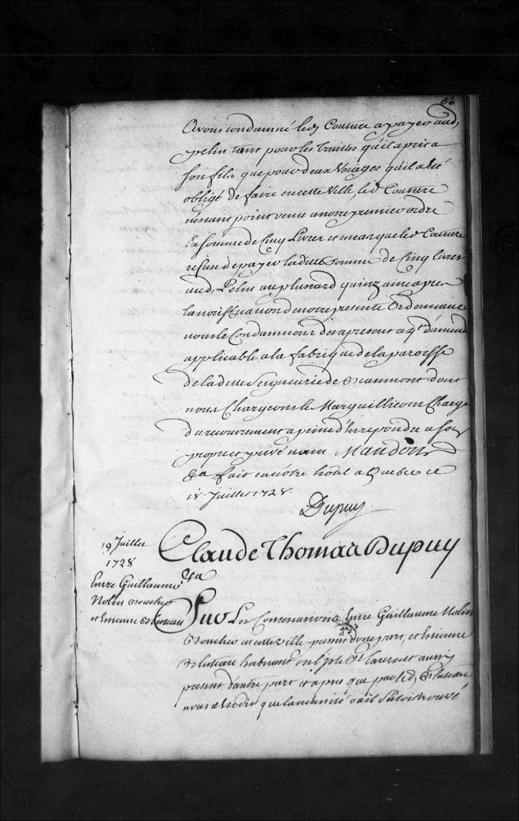 - Ordonnance de l'intendant Dupuy entre Guillaume Nolin, boucher à Québec, et Étienne Bluteau, habitant de l'île Saint-Laurent (île d'Orléans), au sujet de la vente de dix-huit minots de blé
