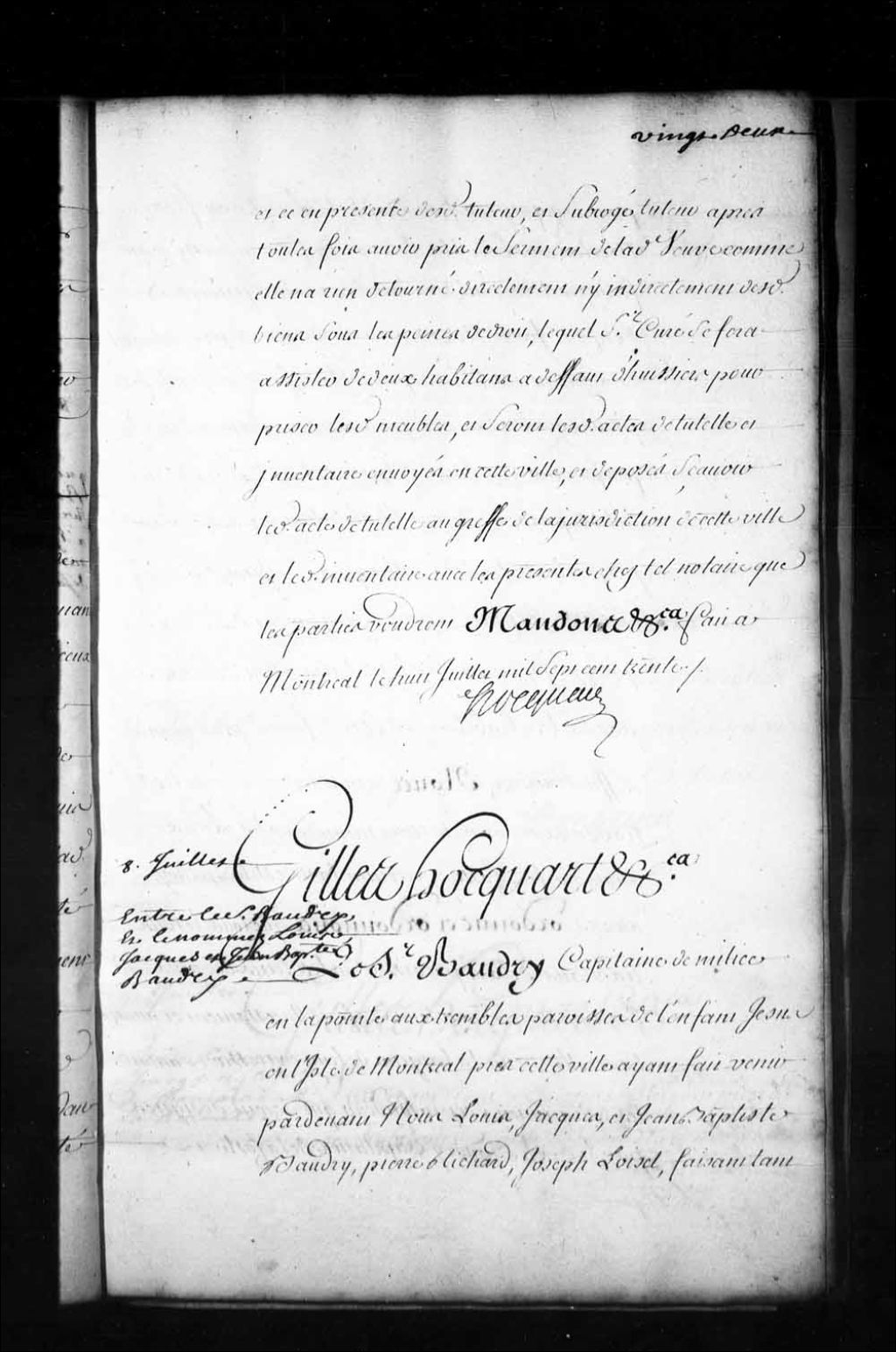 Ordonnance de Gilles Hocquart, faisant les fonctions d'intendant, qui oblige Louis Beaudry, Jacques Beaudry, Jean-Baptiste Beaudry, Pierre Richard, Joseph Loisel (Loiselle), Jean-Baptiste Loisel, Nicolas Dulude (Huet), François Marsan, habitants de la Pointe-aux-Trembles en l'île de Montréal, à faire un double fossé pour l'écoulement des eaux qui séjournent sur les terres de ladite paroisse, 8 juillet 1730, Archives nationales à Québec, Fonds Intendants, (03Q,E1,S1,D18,P2163).