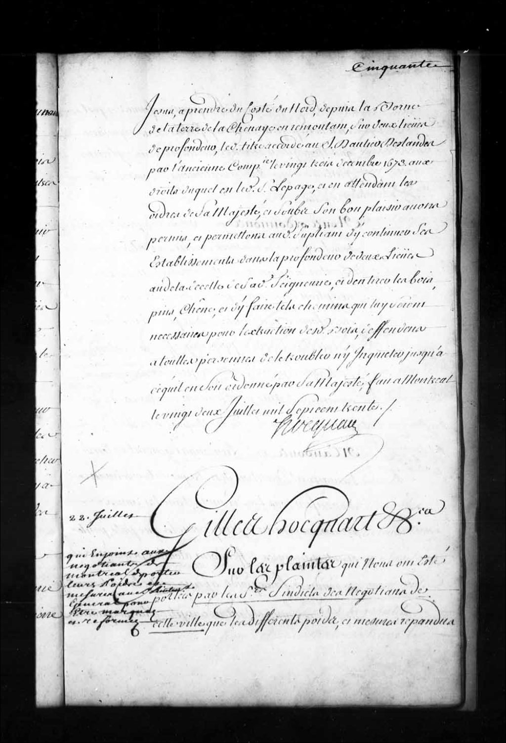 Ordonnance de Gilles Hocquart, faisant les fonctions d'intendant, qui oblige tous les marchands et négociants de Montréal de faire marquer et étalonner leurs poids et mesures, et qui enjoint au lieutenant général de la Juridiction de Montréal de les vérifier tous les six mois, 22 juillet 1730, Archives nationales à Québec, Fonds Intendants, (03Q,E1,S1,D18,P2193).