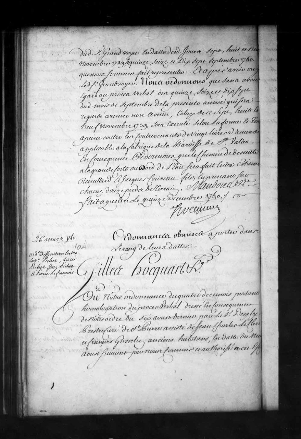 Ordonnance de l'intendant Hocquart définitive entre Louise Asselin, veuve Jacques Pichet, Louis Pichet, Jean Pichet et Pierre Lefrançois, au sujet d'une donation consentie par ladite veuve Pichet à Louis Pichet, 26 mars 1740, Archives nationales à Québec, Fonds Intendants, (03Q,E1,S1,D28,P3290).