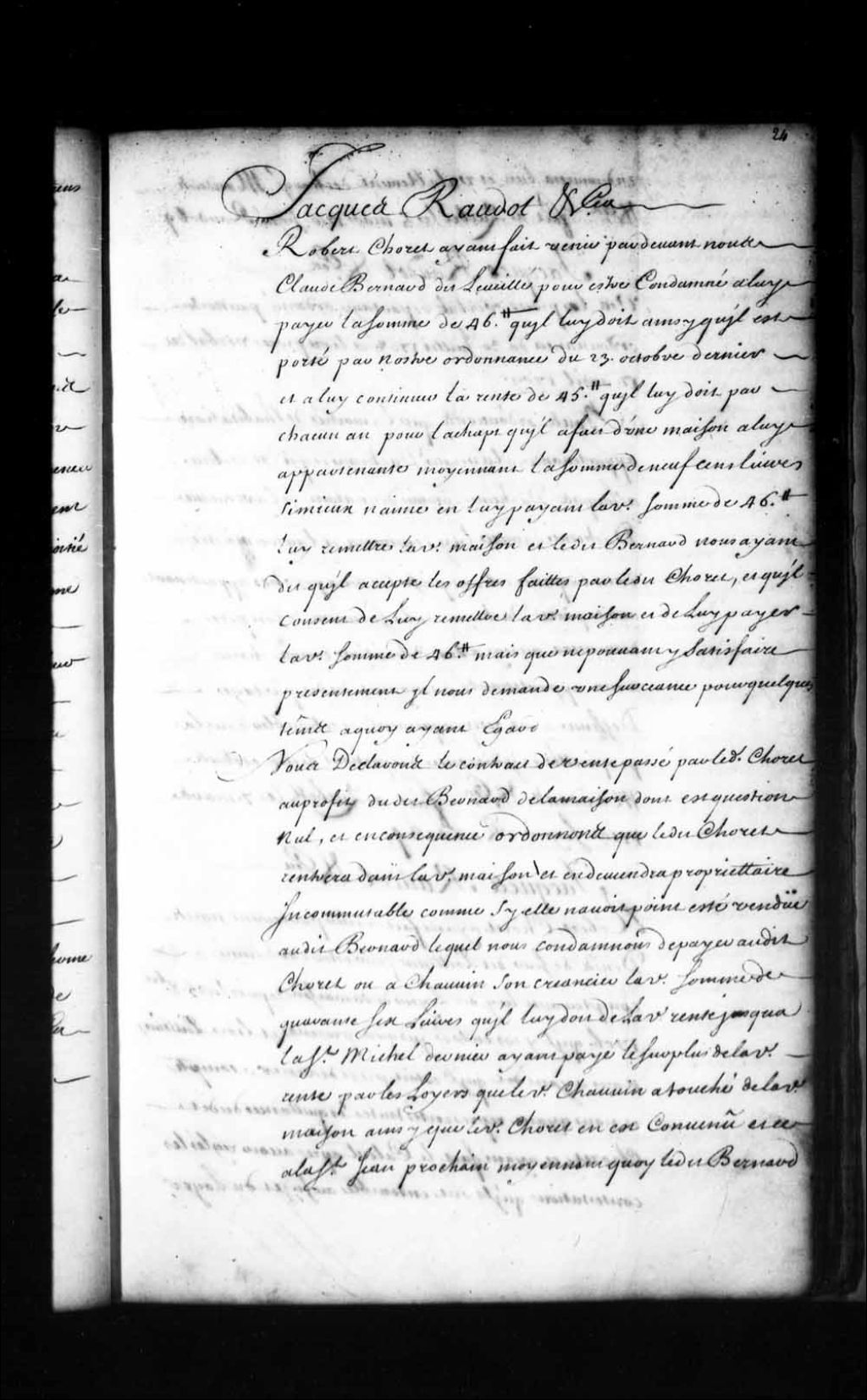 Ordonnance de l'intendant Jacques Raudot qui annule le contrat de vente d'une maison fait par Robert Choret à Claude Bernard