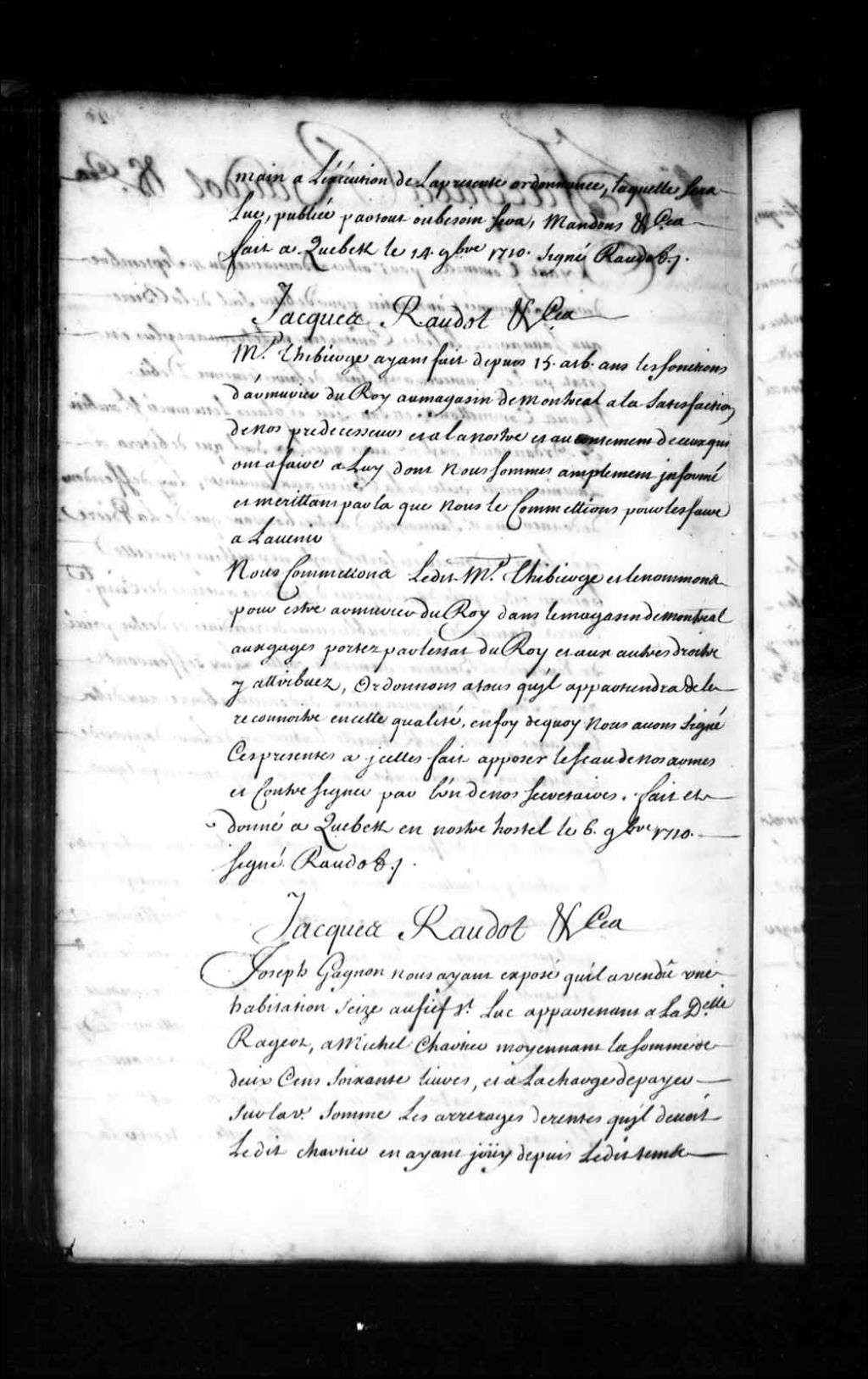 Commission d'armurier du Roi dans le magasin de Montréal par l'intendant Jacques Raudot pour le sieur Thivierge