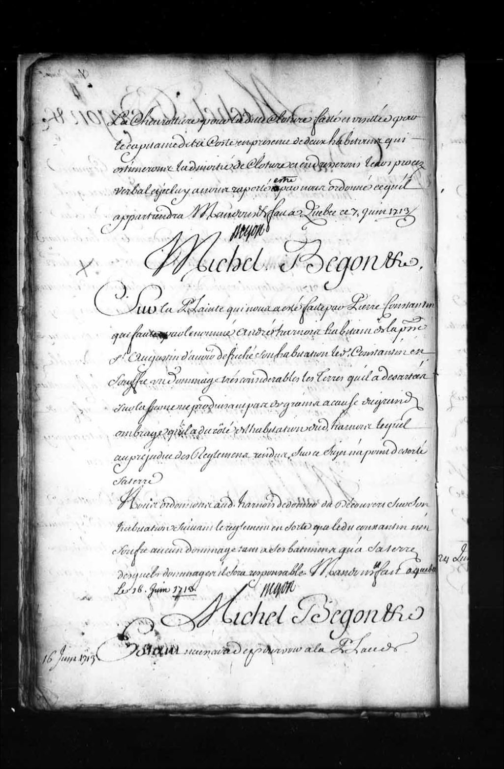 Commission de concierge des prisons des Trois-Rivières par l'intendant Bégon au sieur Pierre Poulin, notaire et greffier de cette juridiction, à la place de Jean-Baptiste Pottier (Pothier), décédé, 16 juin 1713, Archives nationales à Québec, Fonds Intendants, (03Q,E1,S1,D6,P853).