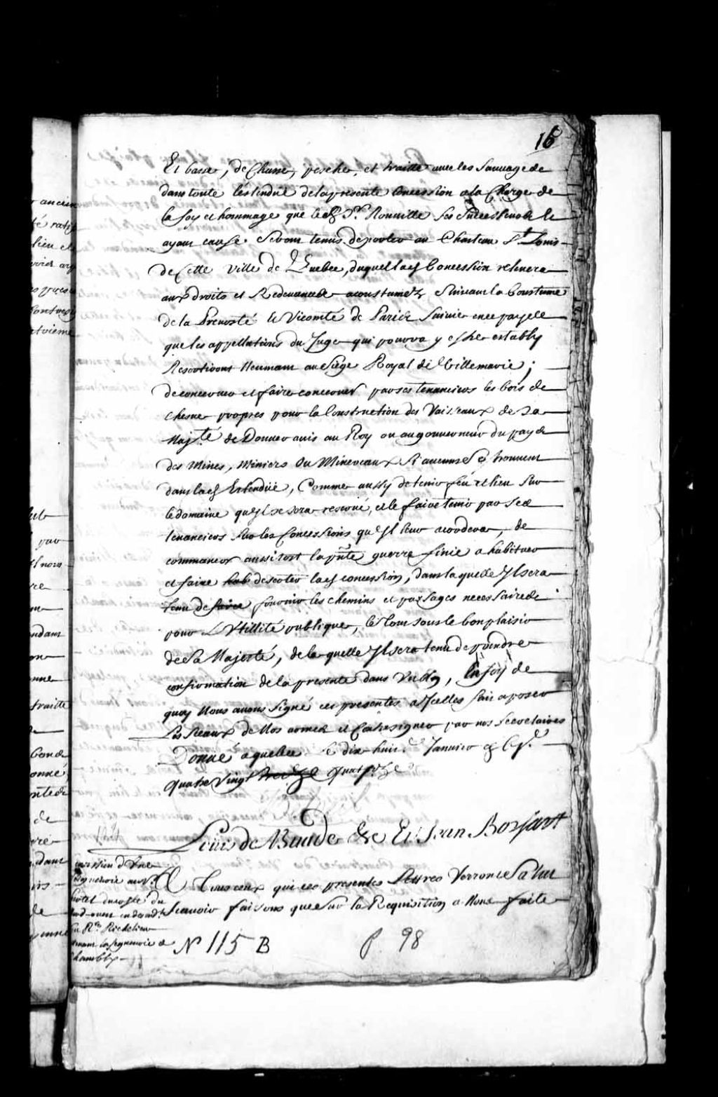 Acte de concession par Louis de Buade, Comte de Frontenac, et Jean Bochart Champigny, gouverneur et intendant de la Nouvelle-France, à Joseph Hertel, écuyer, de deux lieues de terre de front avec une lieue et demie de profondeur à prendre du côté du nord-ouest de la rivière Richelieu, laquelle concession tenant à la seigneurie de Chambly en descendant ladite rivière, à titre de fief et seigneurie avec droits de haute, moyenne et basse justice, 18 janvier 1694, Archives nationales à Québec, Fonds Intendants, (03Q,E1,S3,P152).