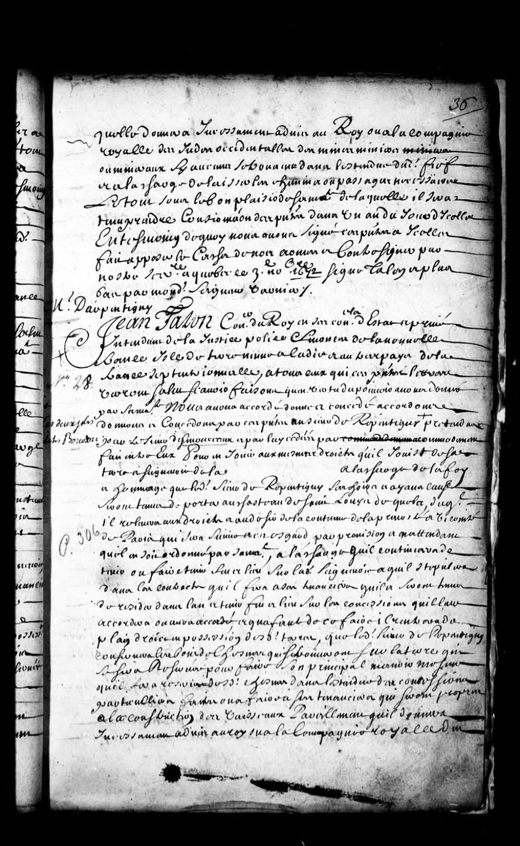 Acte de concession par Jean Talon, intendant de la Nouvelle-France, au sieur de Repentigny de deux îles dites Bourdon, auparavant prétendues par le sieur de Musseaux (Monceaux, Muceaux) et par lui cédées par accommodement fait entre eux, pour en jouir aux mêmes droits que la terre et seigneurie de Repentigny dite de l'Assomption